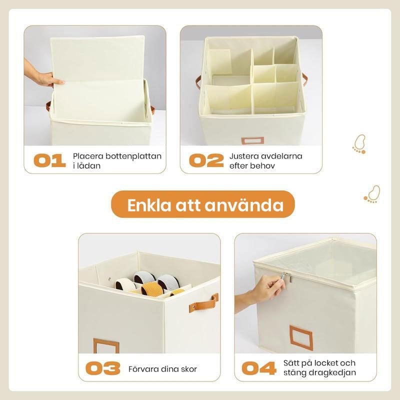 Håll dina skor organiserade, dammfria och lättåtkomliga med vår hopfällbara skoförvaringslåda! Den är både praktisk och stilren – ett måste i varje hem.