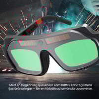 Perfekta för svetsning, kapning och andra högtemperaturarbeten – glasögonen justerar automatiskt från ljust till mörkt när en ljusbåge upptäcks, och ger omedelbar ögonkomfort utan manuell justering.