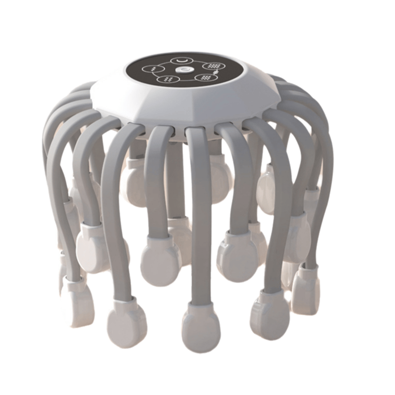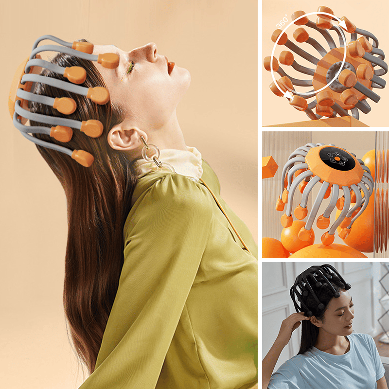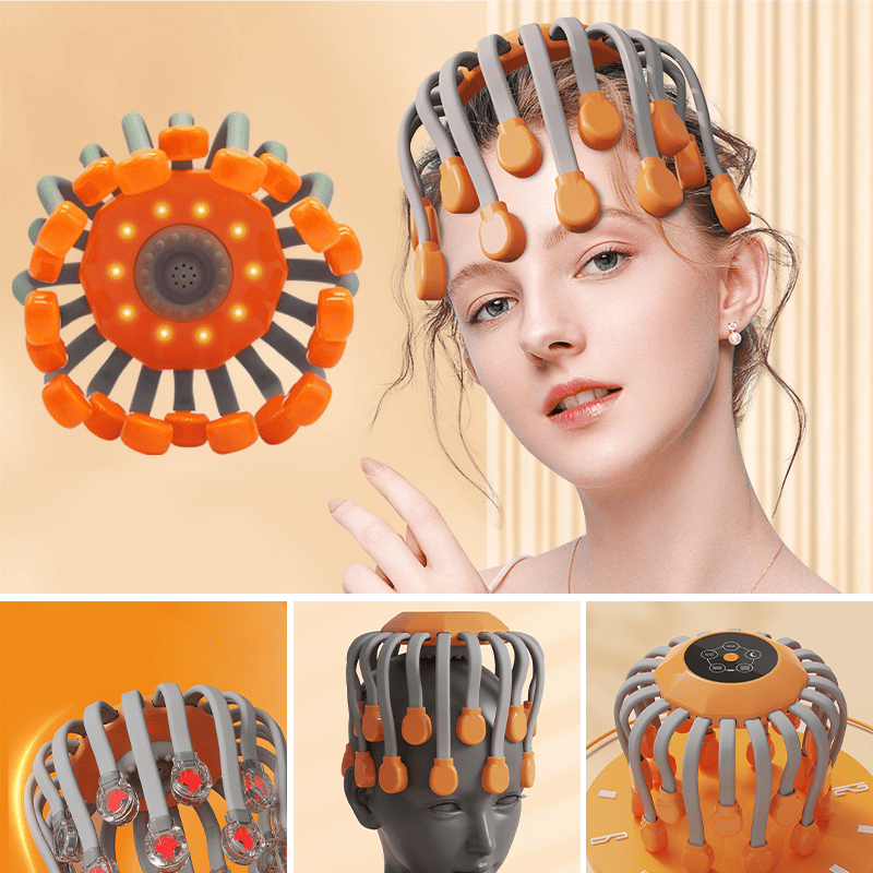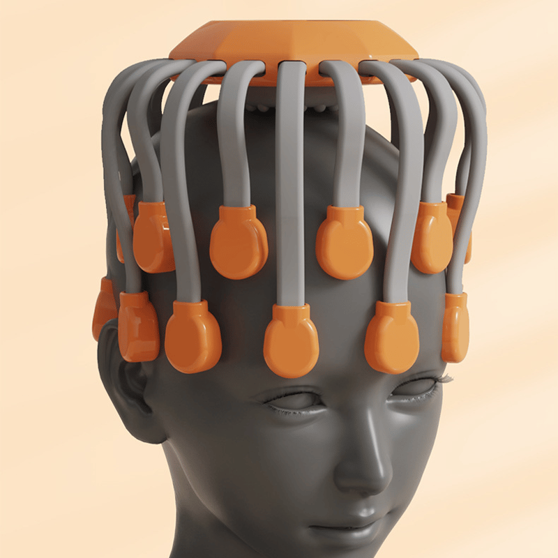 Lindra stress, förbättra sömnen och fräscha upp sinnet — upplev djup, heltäckande avslappning i hårbotten med denna intelligenta huvudmassager med 20 klor.
