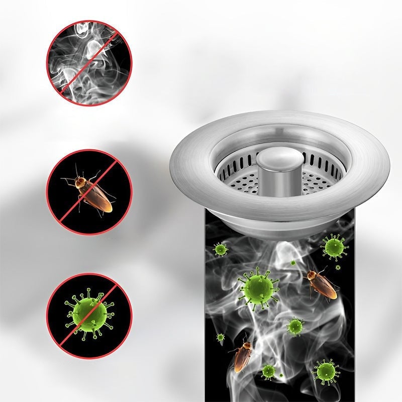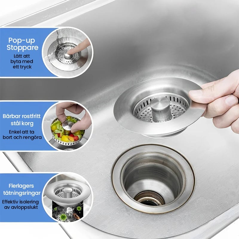 Denna diskho-sil kombinerar tre viktiga funktioner i ett: sil, stoppare och luktfilter. Säg adjö till stopp i avloppet, obehagliga lukter och långsam dränering. Detta verktyg gör allt och håller din diskho fräsch och ren!